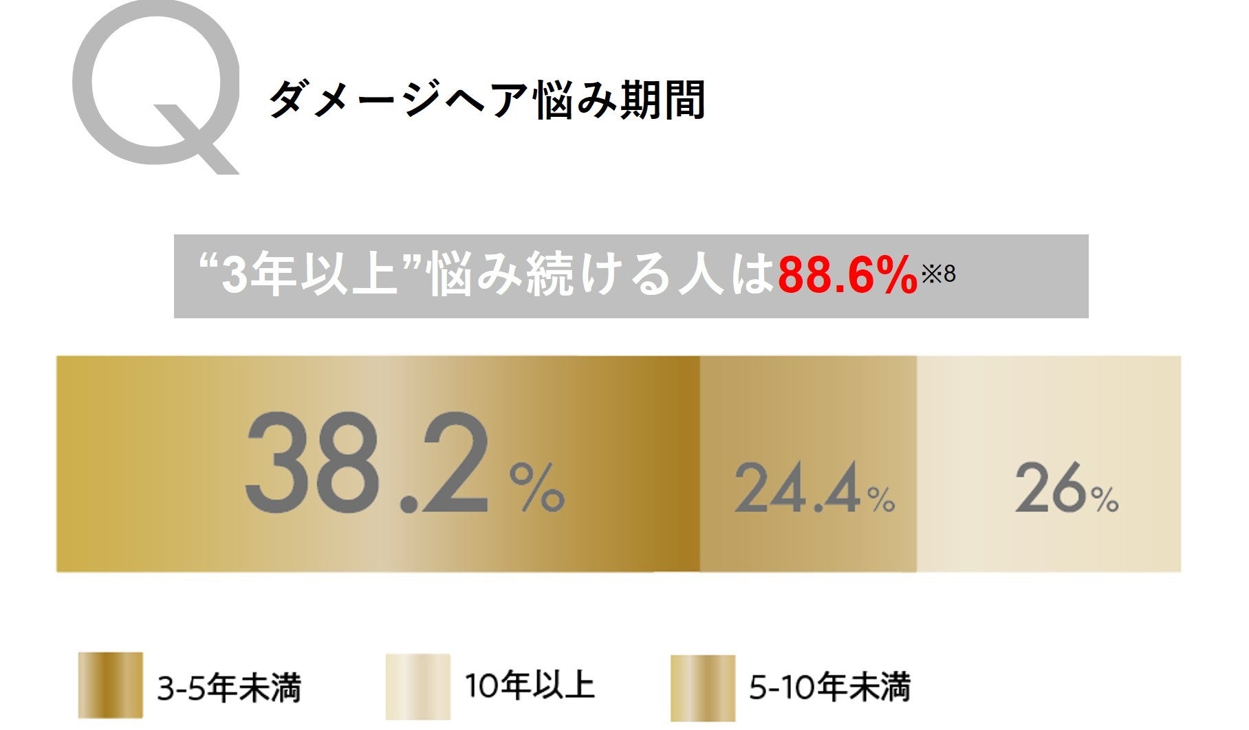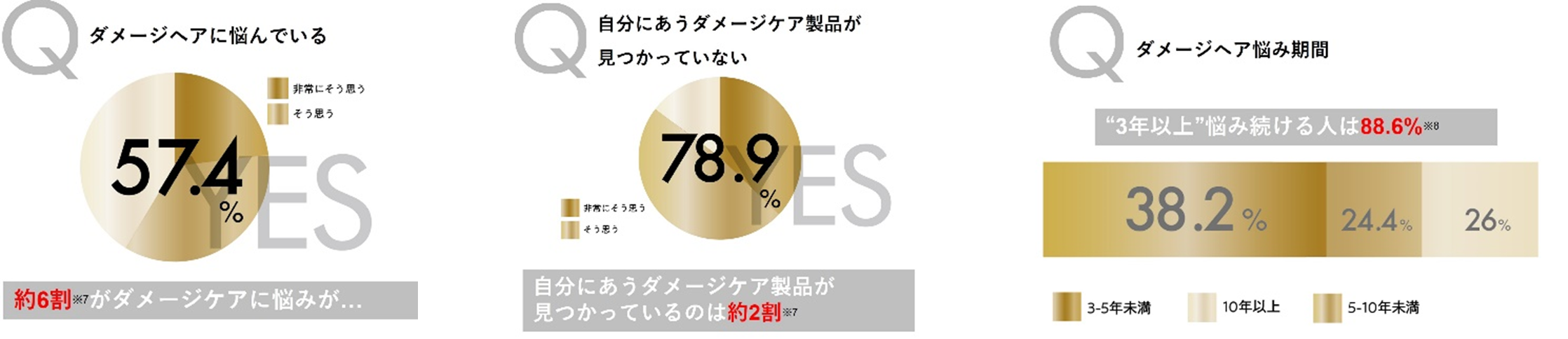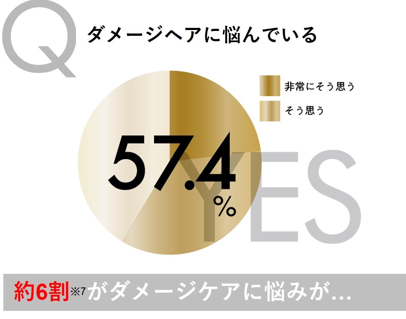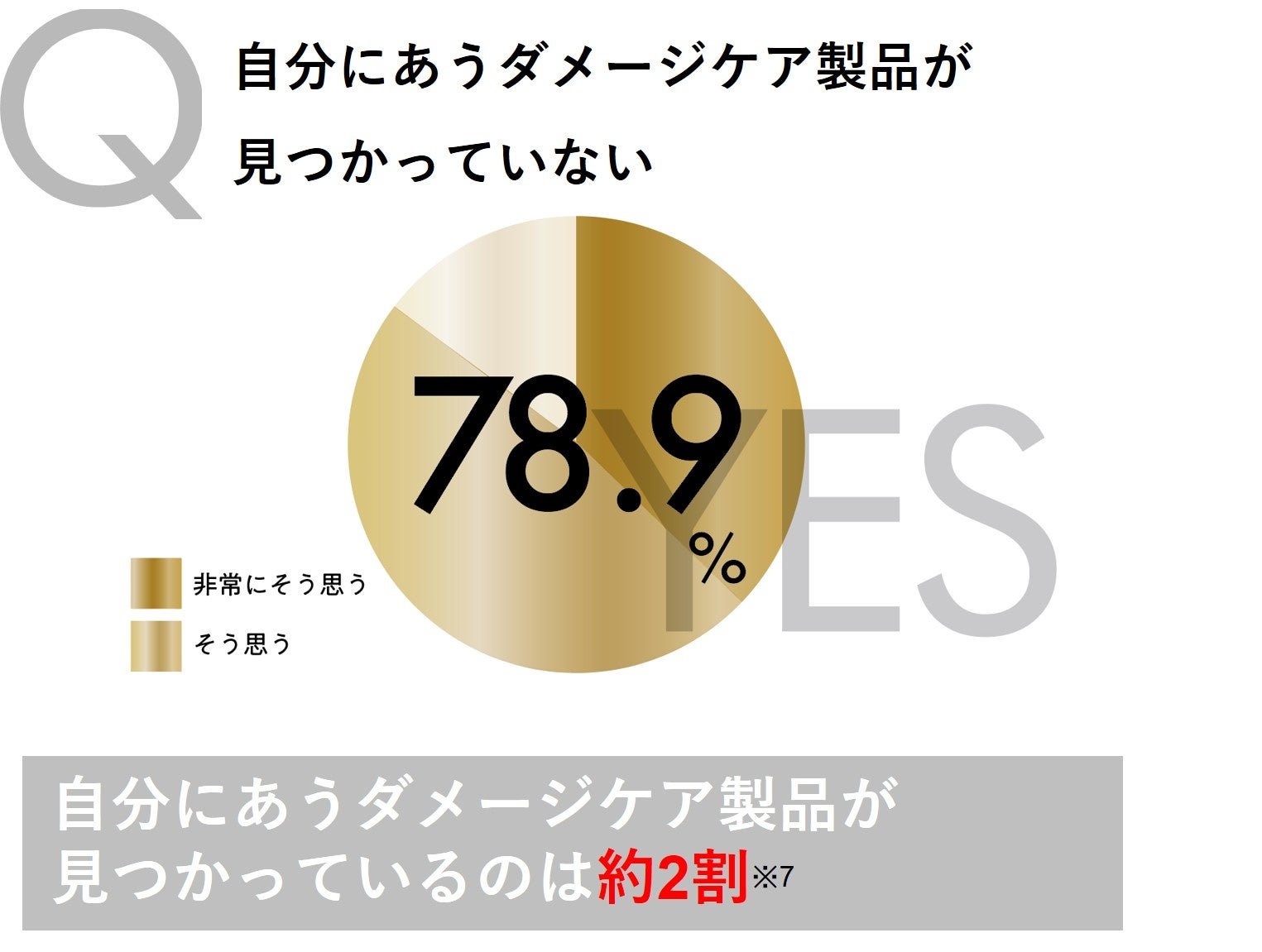 ※7 設問内容:ヘアケアに関する次の項目についてあなたのお気持ちに近いものをお知らせください。ダメージ ヘアに悩んでいる、ダメージケアに悩んでいる/