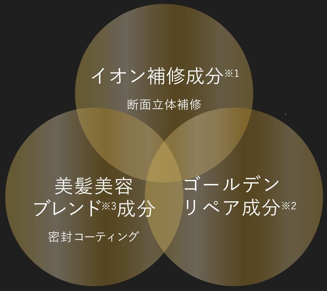 ※4 ゴールデンリペア成分:椿オイル、ローヤルゼリー、大豆プロテイン(補修)