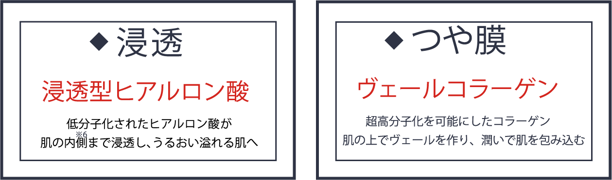 浸透型ヒアルロン酸※4がうるおい満たし、ヴェールコラーゲン※5がハリつやを与えます。