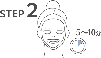 目と口、小鼻部分をお顔に合わせてフィットさせ、5~10分ほどおいてからマスクをはがします。