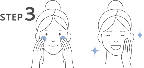 お肌に残った美容液を手のひらでなじませ、その後いつも通りのスキンケアをしてください。