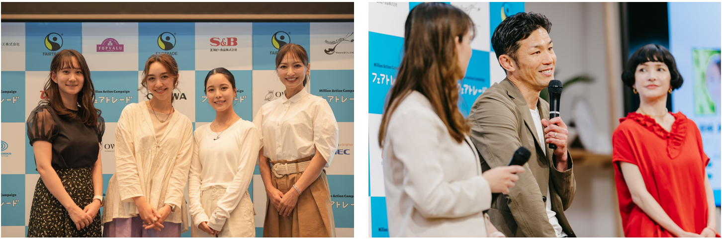 4年目となる今年は、イオン株式会社、エスビー食品株式会社、小川珈琲株式会社、UCCジャパン株式会社などの大手企業をはじめ、国内の小売店・食品メーカー・飲食店・商社・自治体・教育機関など最終的に過去最大の188社・団体・飲食店等と協働で開催、フェアトレードの商品購入数、SNS投稿数、イベント参加数などを合計し、これまでで最大の250万アクションを目標に活動を行いました。期間中は、キャンペーンの一環として未来を味わい、現在の食と生活のあり方を考えるPOPUPショップを2024年5月9日(木)〜5月22日(水)東京・渋谷に期間限定オープン、世界フェアトレード・デーである5月11日(土)には、キャンペーンアンバサダーの髙梨沙羅さんや望月理恵さん、エバンズ亜莉沙さんによるトークイベントも開催しました。その他、全国でイベントの開催やフェアトレードメニューを提供するキャンペーンの開催、フェアトレード商品の割引キャンペーンなど、様々な取り組みが行われました。
