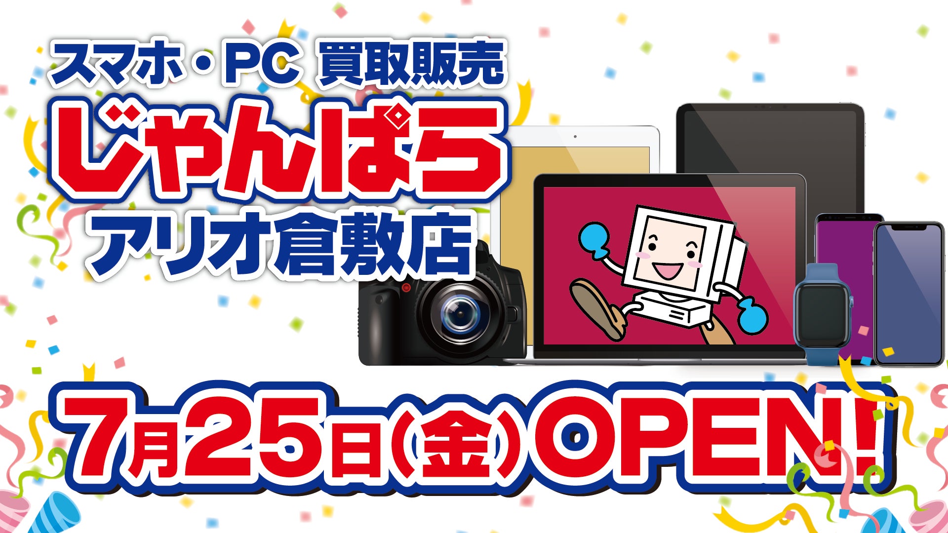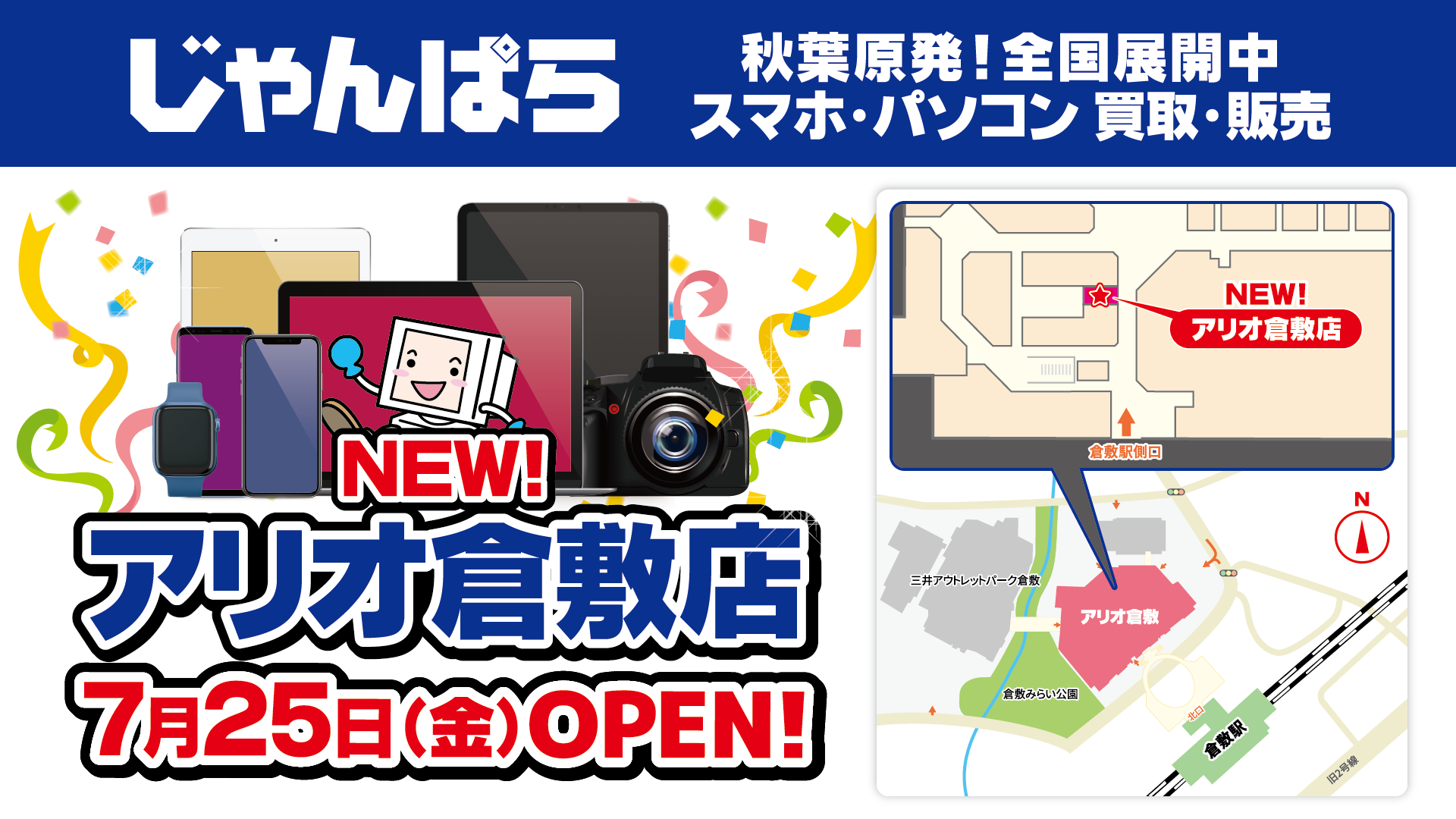 岡山県初出店!スマホ・PC等買取販売「じゃんぱらアリオ倉敷店」7月25日(金)グランドオープン!