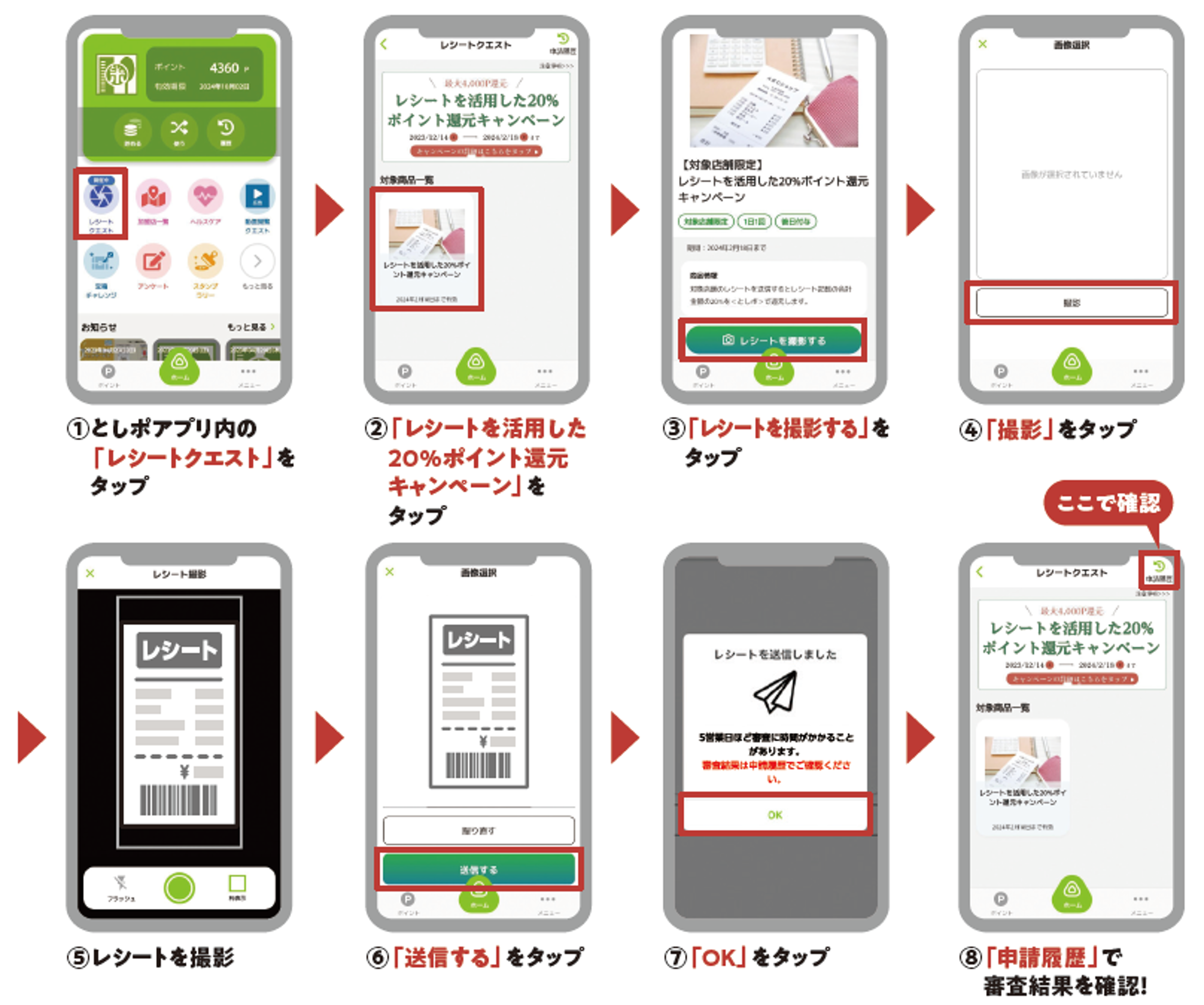 ・有効なレシート写真の送信は1日1枚まで。