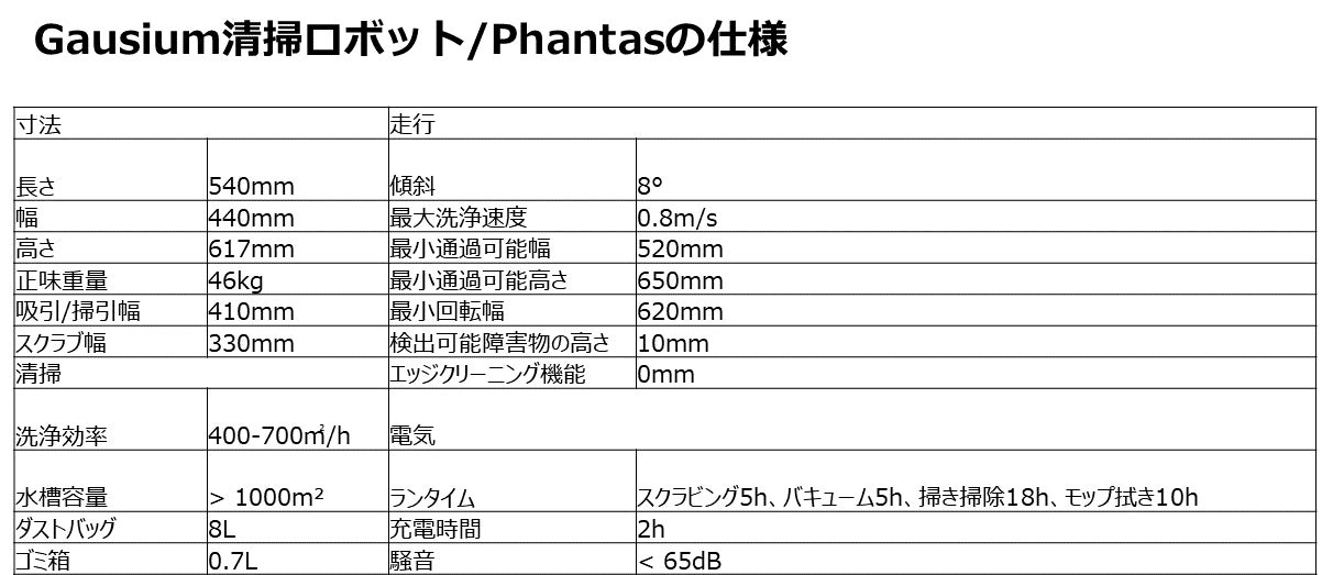 製品名:GAUSIUM清掃ロボットPHANTAS(ファンタス)