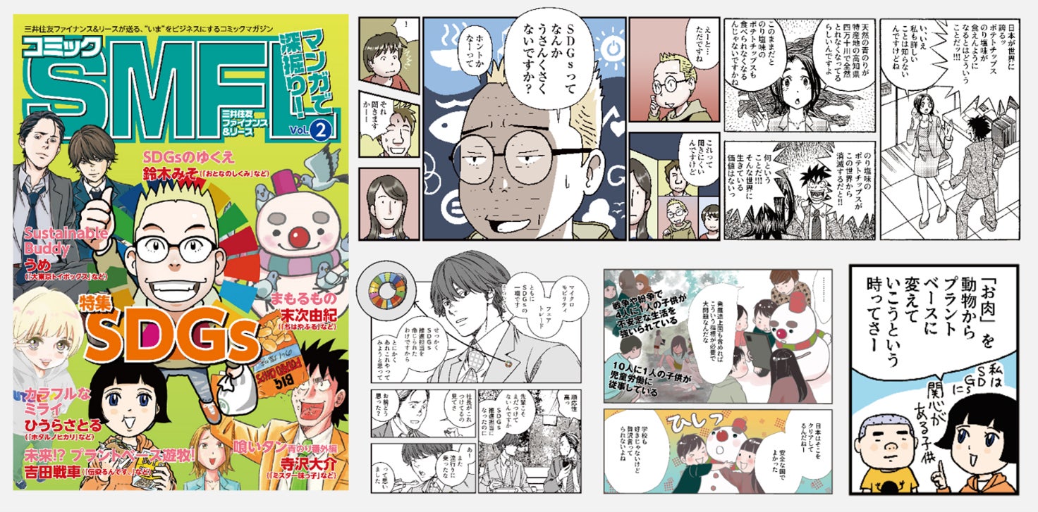 企業にとって、SDGsを始めとする社会課題に対する取り組みがますます重要視されています。企業がSDGsに取り組む場合、17のゴールの中から自社のビジネスと関連のあるテーマを選定し、自社のゴールに落とし込み、事業活動を通じてゴールを達成する必要があるため、SDGsへの正しい理解と共感が重要です。しかしながら、新たにSDGsに取り組む場合、何からどのように取り組むか課題を感じる企業も多く、また、既にSDGsに取り組んでいる企業においても、経営者やSDGsを推進する部署と従業員との間にSDGsに対する理解に大きな差があるといった課題があります。このような課題を解決するため、著名な漫画家が執筆し、ストーリーを楽しみながらSDGsに対する理解・共感を深めることができる冊子「コミックSMFL 特集″SDGs″」を刊行しました。昨年の「コミックSMFL 特集″脱炭素″」に続く2冊目のコミック仕立ての冊子刊行となります。