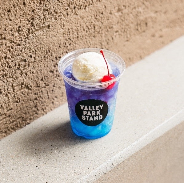 「サイバーポップ」をイメージした炭酸ドリンク。アイスクリームものっていて