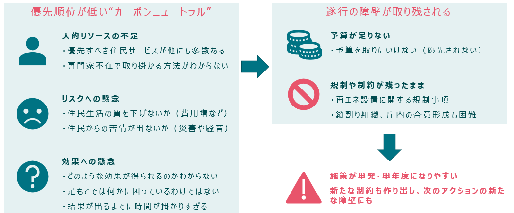 リソース不足、住民の暮らしへのリスクや効果への懸念といった課題を抱える地方公共団体においては、脱炭素の活動の優先順位を上げられない状況があります。そこで、地方公共団体向けにCNaaSを拡張したサービスモデルの策定にいたりました。