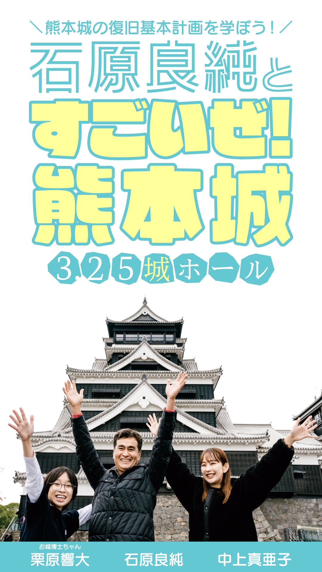 熊本市主催「熊本城の復旧基本計画を学ぼう!石原良純とすごいぜ!熊本城 3.25城ホール」3月25日(土)午後1時30分~午後3時15分 予定