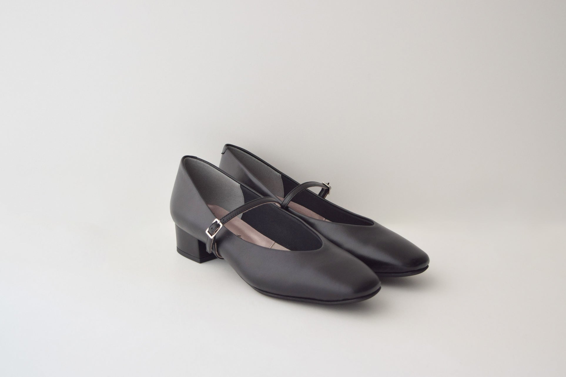 足を包み込むサイド深めなUカットライン。ストラップは取り外し可能で、オフィスからお出かけまで幅広く活躍。ファーストパンプスにも最適です。
