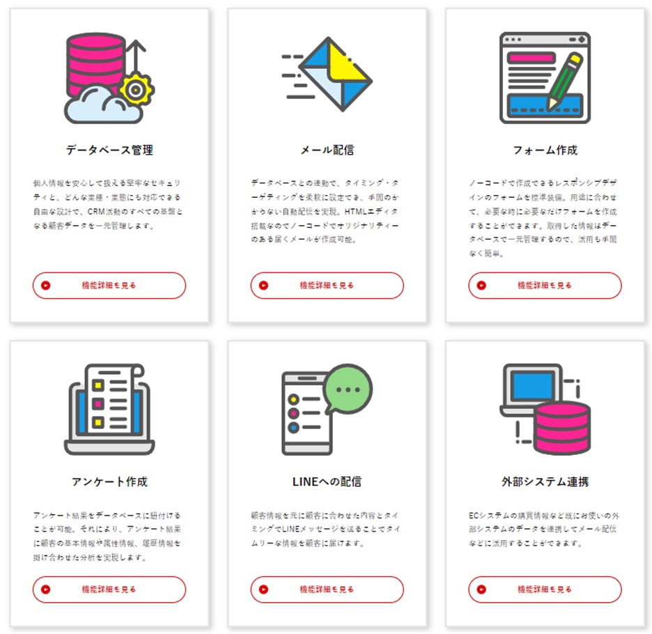顧客管理・メール配信・フォーム作成など、CRMに必要な機能を使いやすく提供