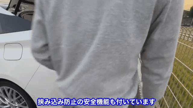 バックドアが閉まる際に異物の挟み込みを感知するとドアが止まり再び開きます。