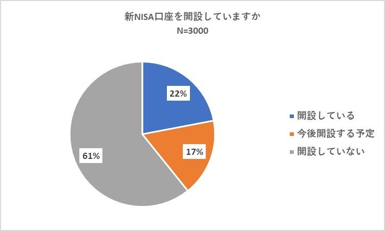 22パーセントが新NISA口座を開設、17パーセントが今後開設予定