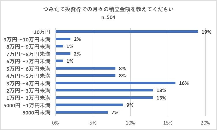 つみたて投資枠の利用額は上限の「10万円」が19パーセントで最多