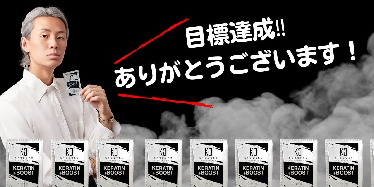 1度目のクラウドファンディング「KYOGOKU ケラチン ブースト+」は171%もの目標金額を達成する事が出来ました!!