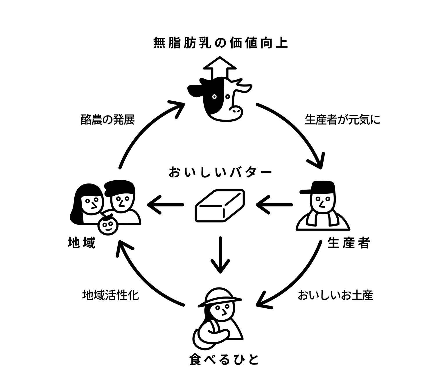牛の飼育方法や飼育環境を考えながらおいしい牛乳づくりをしている酪農家が、トレーサビリティーなバター作りを安定して行うことができるようになることで、世の食卓がより豊かになっていく未来を描いて生まれたお菓子が「バターのいとこ」です。