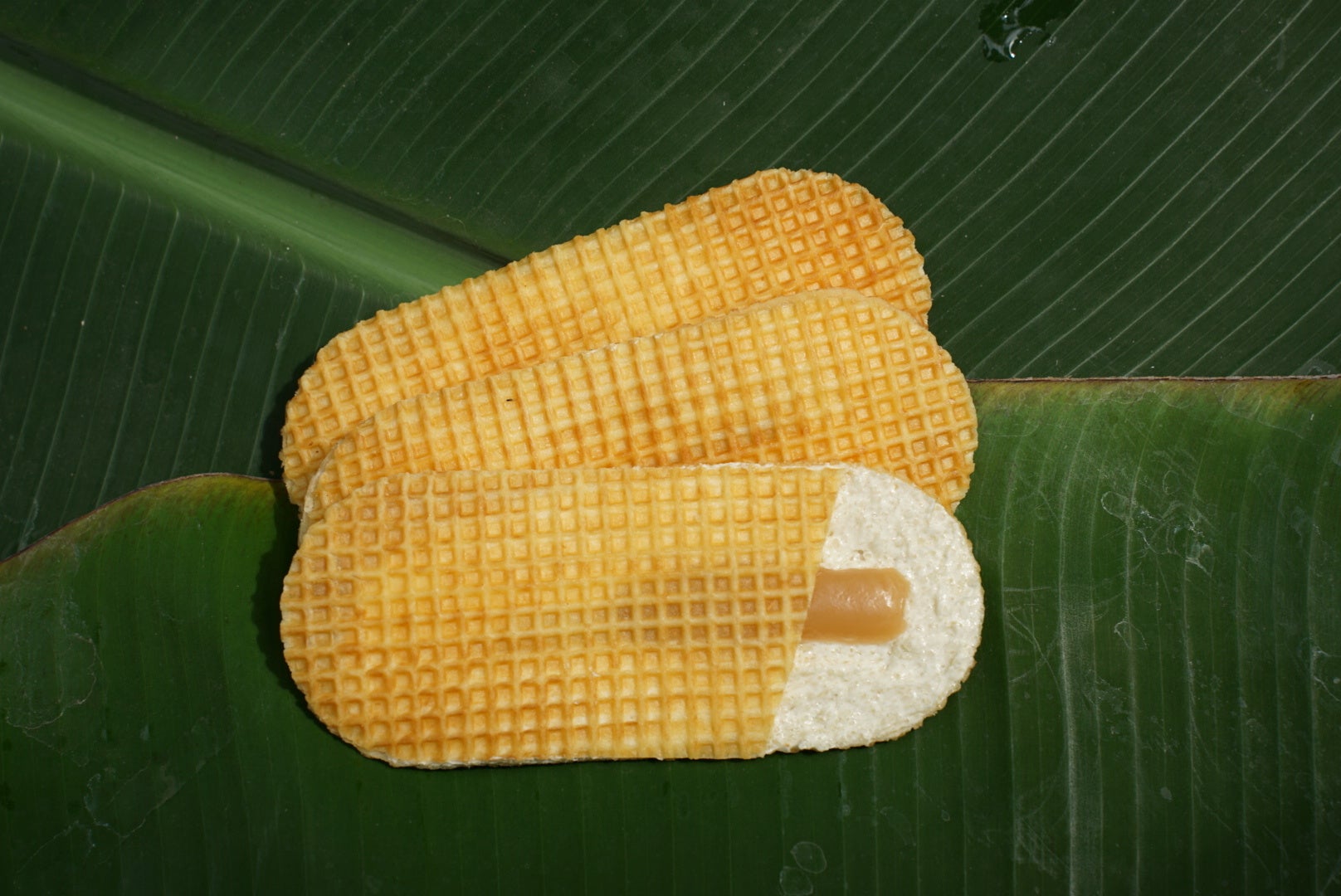 バターが香り立つゴーフレット生地に、香り豊かで甘みのある『とちおとこ』のバナナジャム、シナモンを程よく効かせたバタークリームをサンド。ジャムにすることで『とちおとこ』本来の味わいがより一層引き立ち、シナモンが輪郭と奥行きを与えます。
