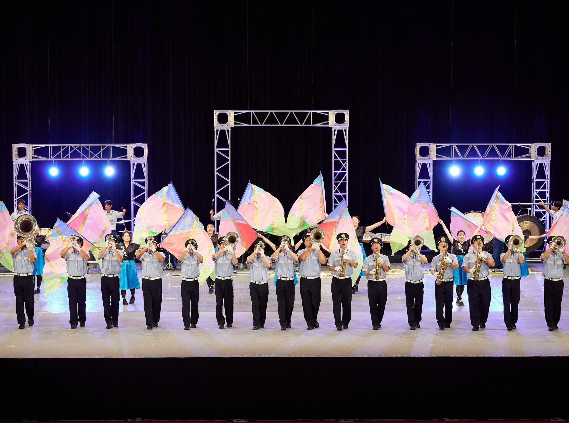 マーチングバンド、バトントワーリング、チアダンス、吹奏楽など、県内の団体が参加し、音楽や華麗な演技で会場を盛り上げます。さらに、フィナーレでは、出演団体が合同でパフォーマンスを行います。