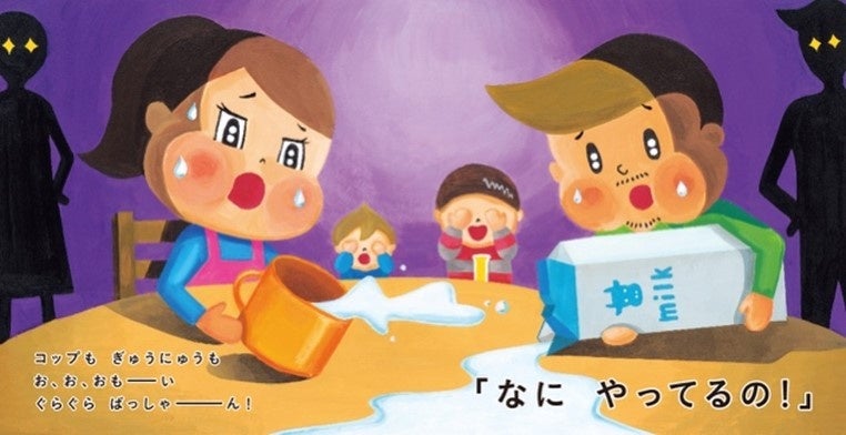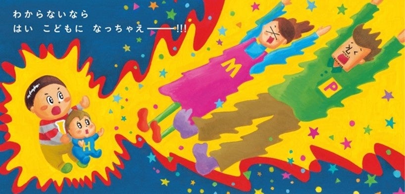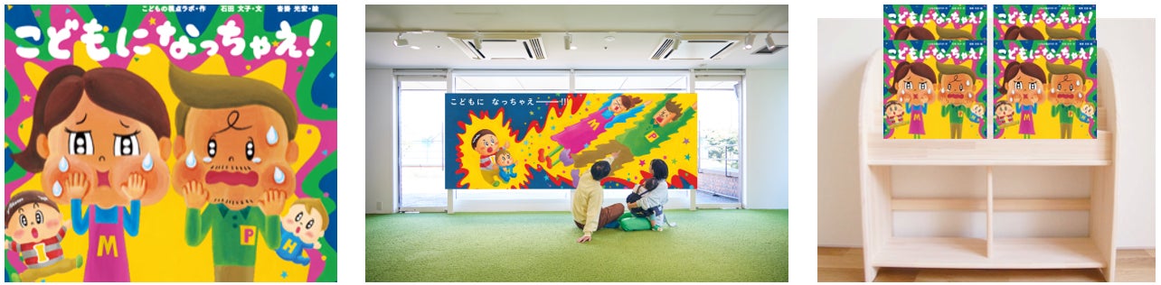 今回登場する「こどもになっちゃえ!」は、「赤ちゃんの頭はどれくらい重い?」「立っている大人に怒られるってどんな気持ち?」など、「大人がこどもになってみる体験」をストーリー化し、「こどもになったママとパパ」を通して子どもへの接し方を考える機会になる、新しいタイプの絵本です。