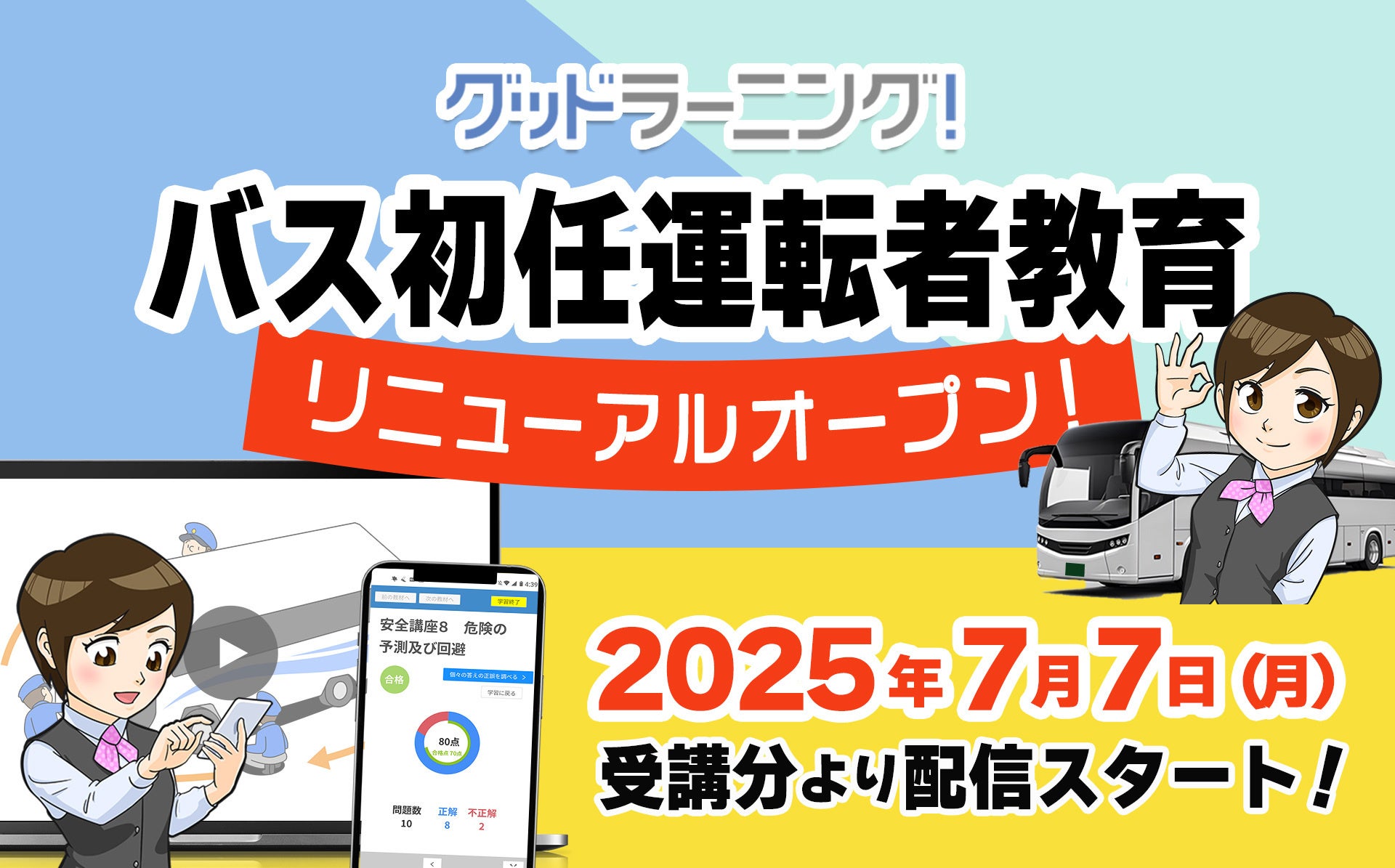 株式会社キャブステーション(本社:東京都新宿区、代表取締役:楠木崇延)が運営する運輸事業者向け安全教育eラーニングシステム「グッドラーニング!」は、このたび大人気コンテンツ「バス初任運転者教育」を全面リニューアルし、2025年7月7日(月)受講分から提供を開始します。