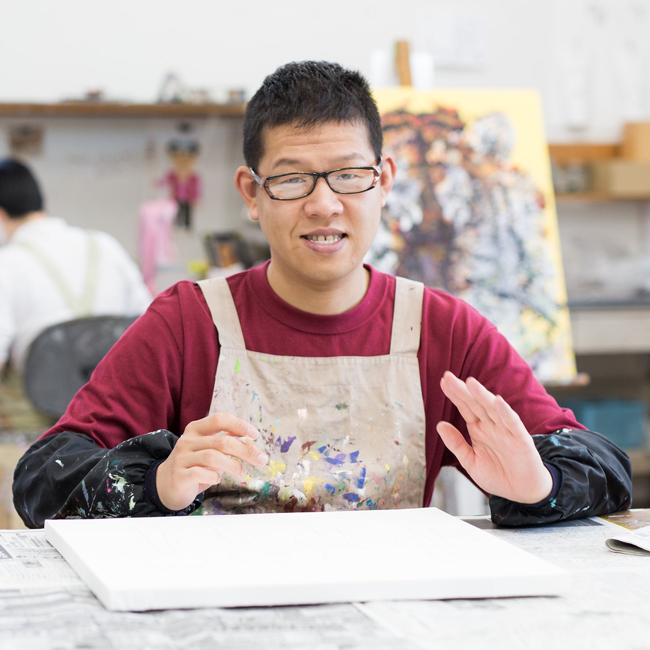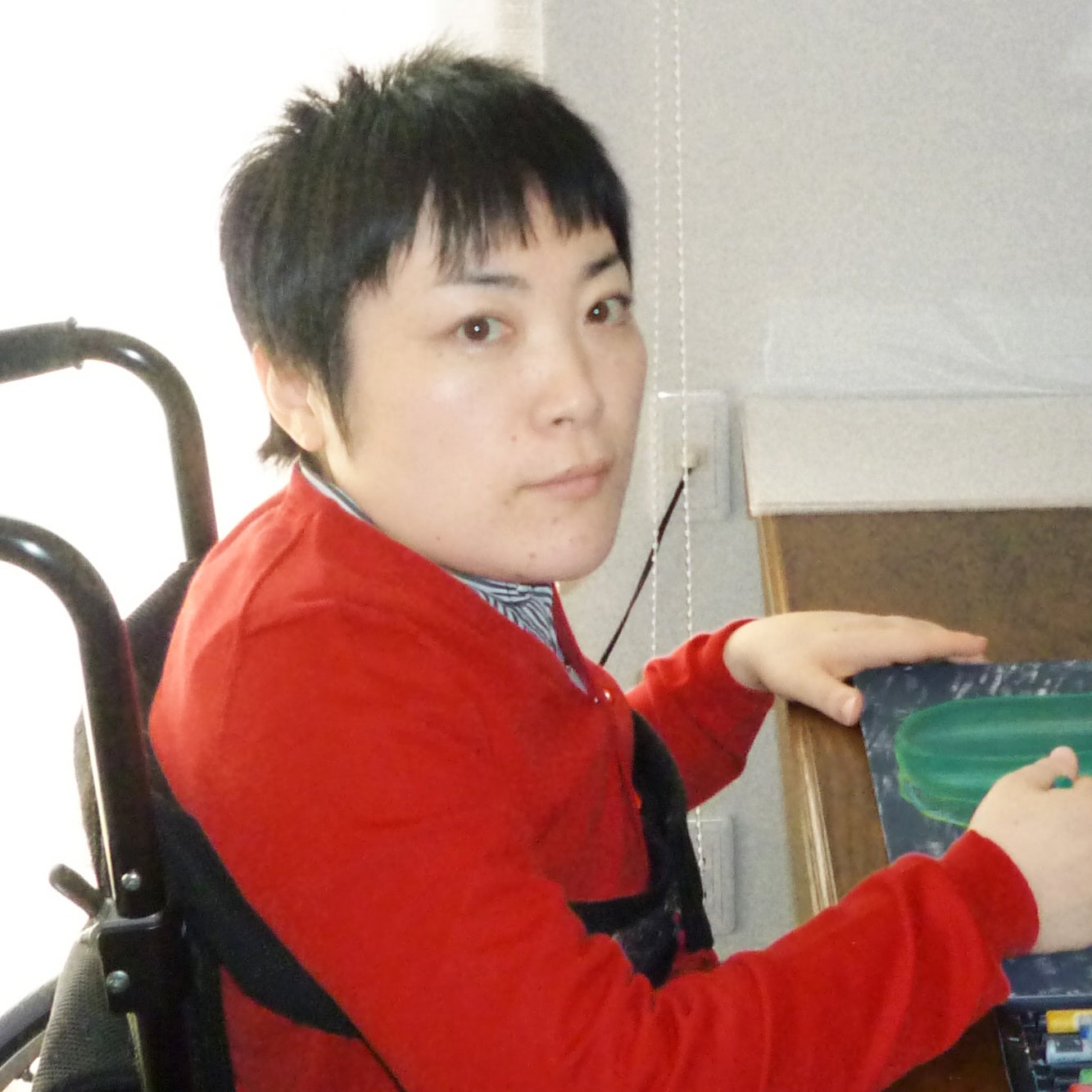 19才の時に、入院していた病院の主治医や看護師、理学療法士の顔をデフォルメして描き始める。現在では、空想画・抽象画を描いている。また、パソコンを使ってキャラクターを描き、グッズなども制作。