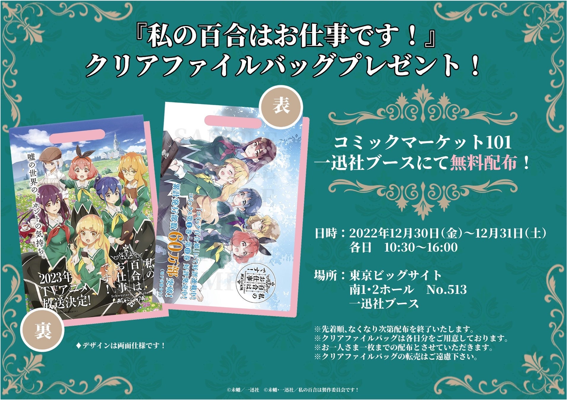 - コミックマーケット101の一迅社ブースにて、クリアファイルバッグをプレゼント!