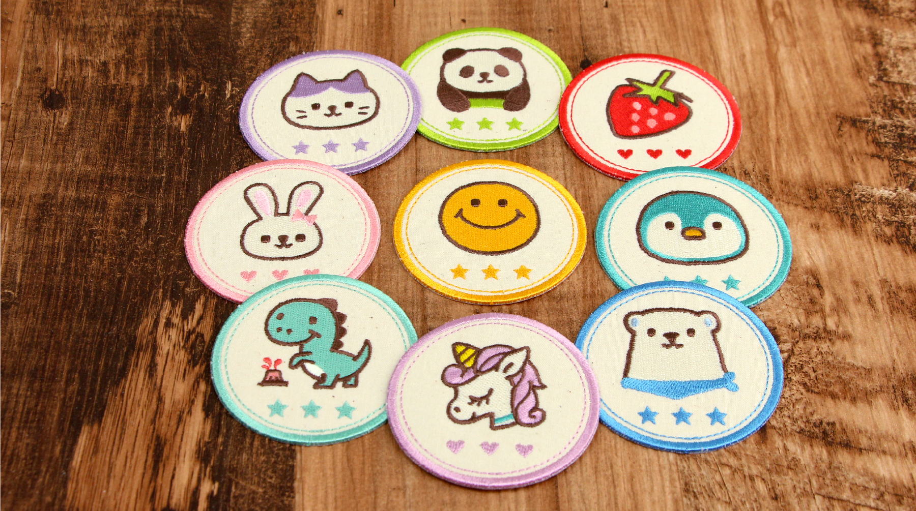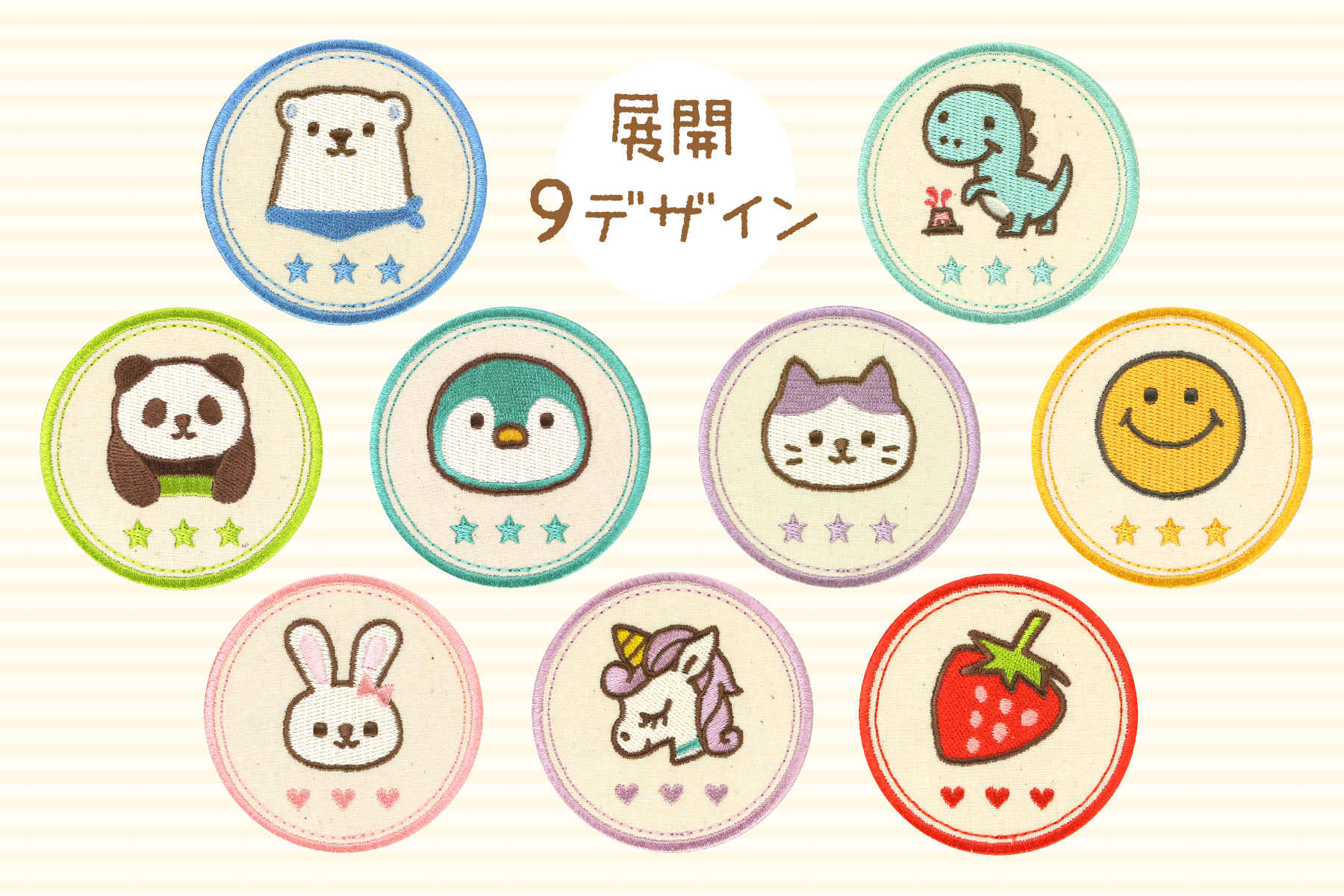 [通園グッズ・保育士さん向け]スタンプの人気シリーズがアップリケに。おしゃれな刺繍ワッペンでお子さまの気持ちをUP!0歳〜3歳のマイマークとしてもオススメ。