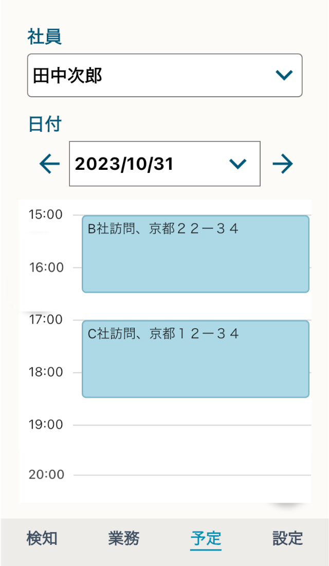 【車両予約・社員の予定管理画面(スマートフォン版)】