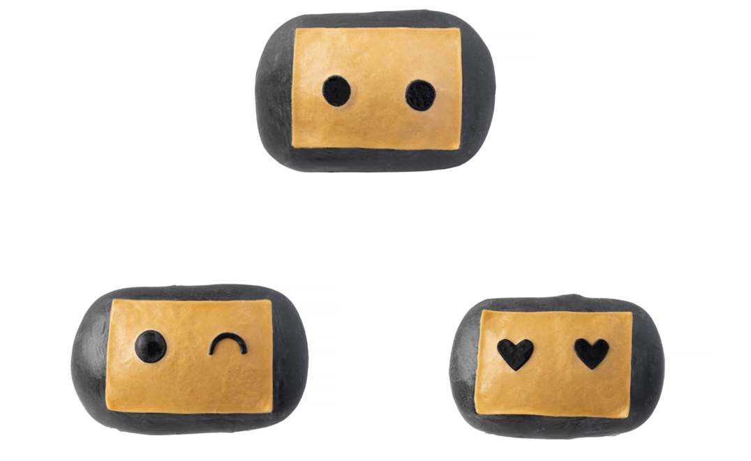 THEOの顔がデザインされているピザまんです。3種類の表情のうち、どのTHEOに出会えるかな?