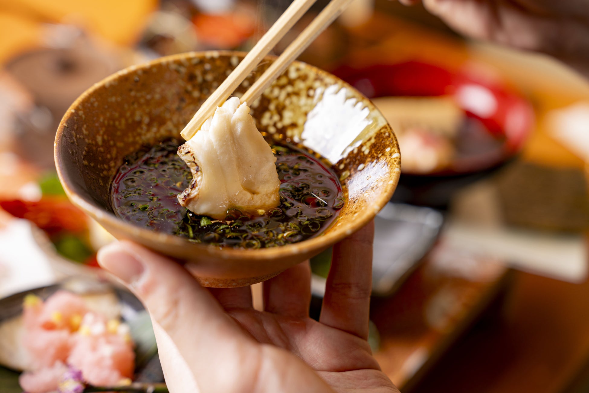 しゃぶしゃぶした桜鯛は身がしまり、そのまま頂くことで桜鯛を口いっぱいに感じられます。