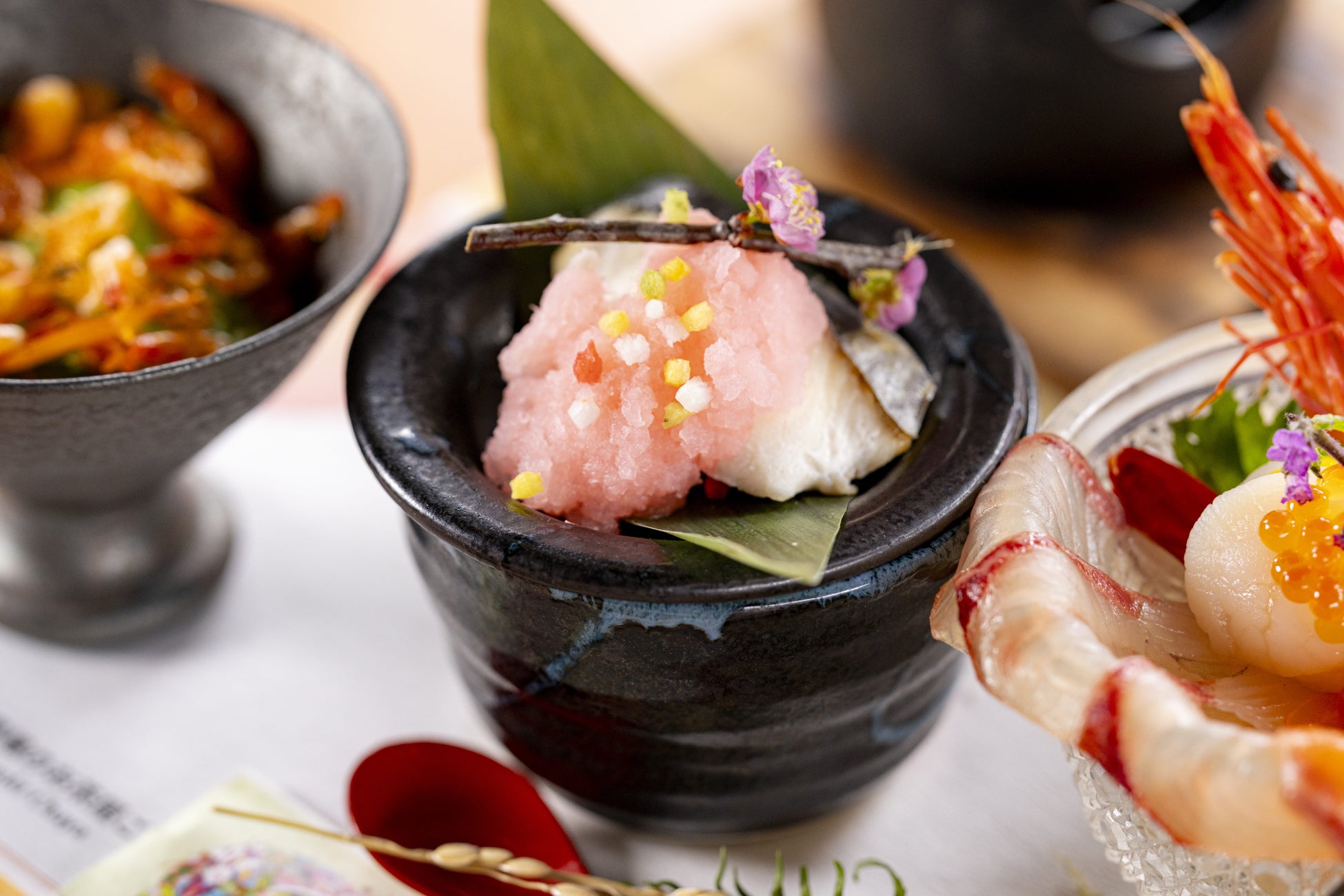 丁寧に蒸し上げた旬の魚に、桜で春らしさを表現した大根おろしを。