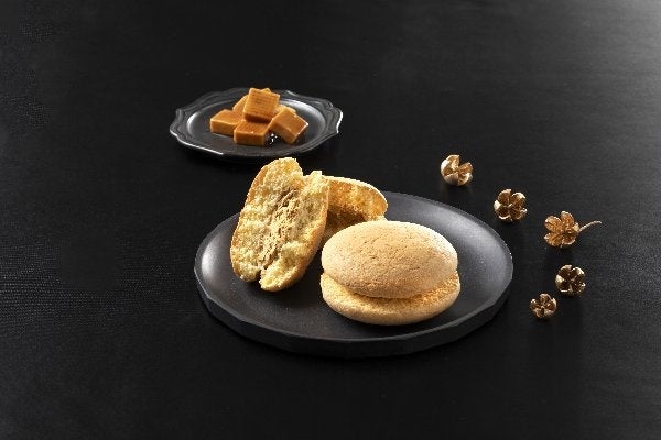【商品特長】柔らかなスフレでビターキャラメルカスタードをサンドしました。アーモンドプードルを練り込んだスフレケーキがビターなキャラメルクリームの苦みとコクを引き立てます。