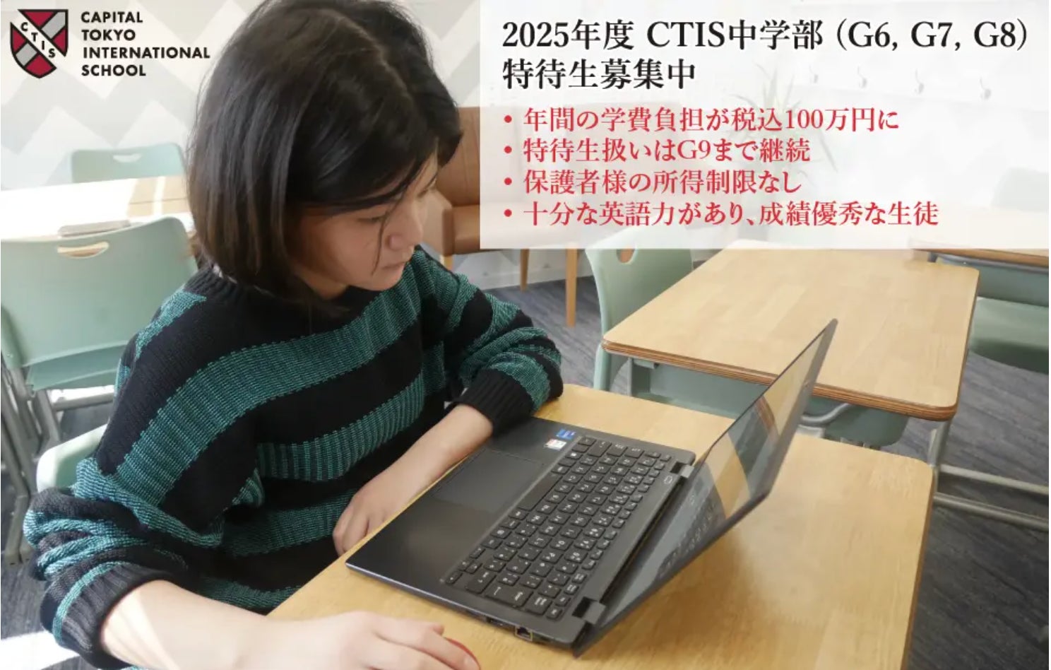 CTIS中学部(港区南麻布)は2025年2月に国際バカロレア(IB)ミドル・イヤーズ・プログラム(MYP)認定校となりました。また、G7-9は特待生制度も設けています。