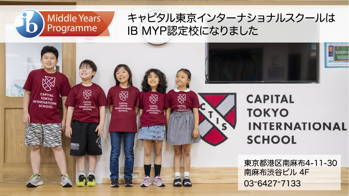 CTISは、この素晴らしいニュースをお伝えできることを嬉しく思います。2025年2月17日より、キャピタル東京インターナショナルスクールは、6年生から8年生を対象にミドル・イヤーズ・プログラム(MYP)を提供する認定校となりました。これまでご支援いただいた素晴らしい教育者、生徒、保護者の皆さまに感謝いたします。