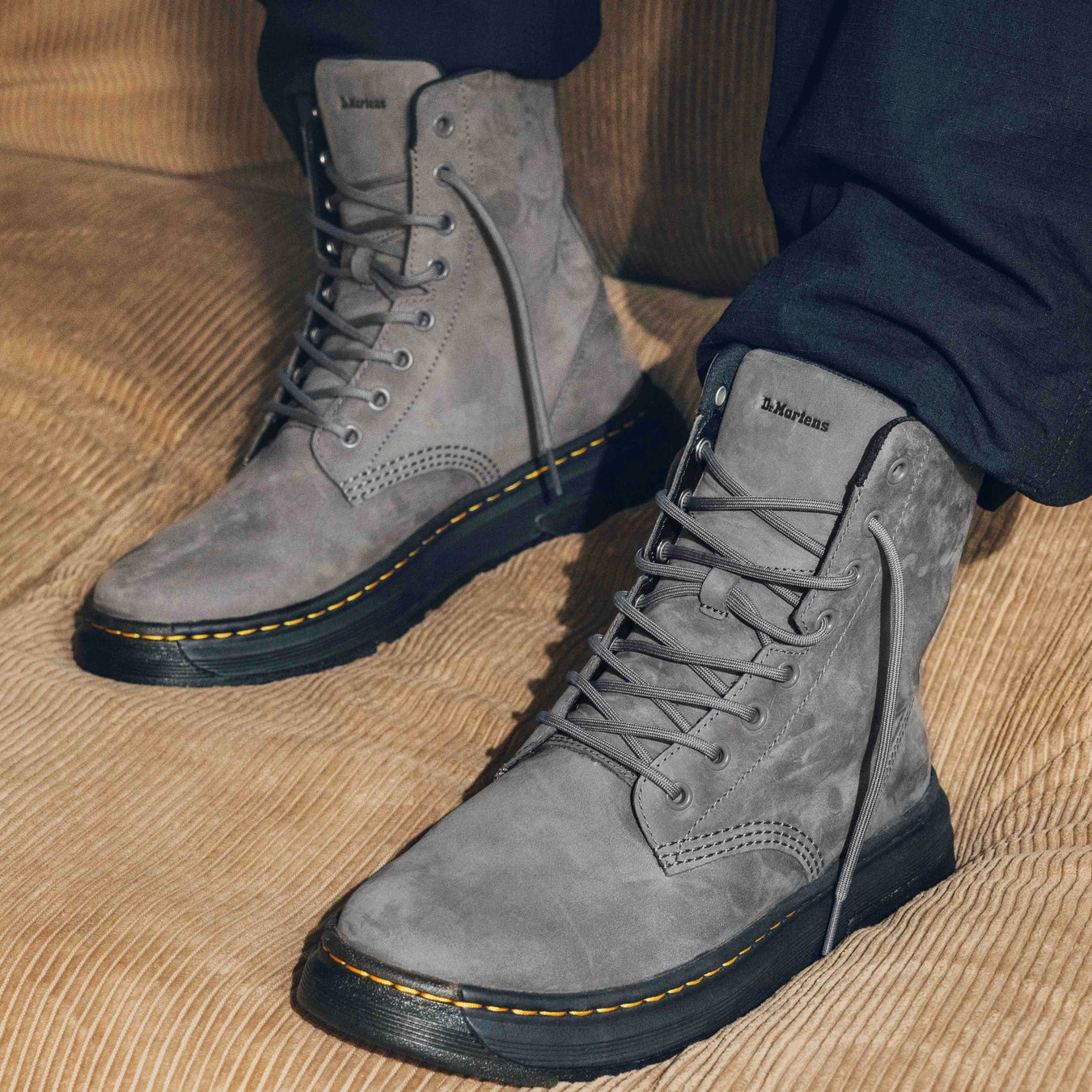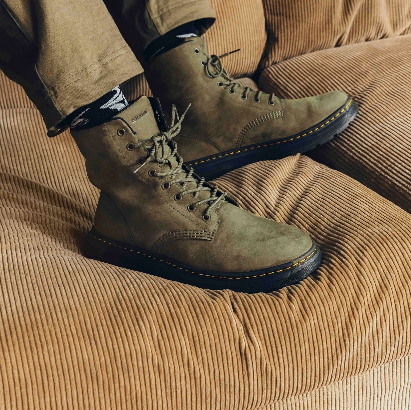ドクターマーチンの新作CREWSON(クルーソン)ブーツは、ドクターマーチンの伝統的なシルエットにラバーとポリウレタンを融合させた2層構造の軽量ソールを搭載したブーツです。60年以上にわたるイノベーションにより誕生したCREWSON(クルーソン) ブーツは、内側も外側も高い機能性を備えています。内蔵された快適なソフトウェアーインソールはふかふかとした履き心地を叶え、アッパーはプレミアム感を持つ新しいレザー3色で展開します。ブラックは「クラシックプルアップレザー」ガンメタル、オリーブは「バフバック」(ヌバック)を使用しています。黄色のステッチとヒールループを備えドクターマーチンらしさを実現させながらも軽量でカジュアルなスタイルを提案します。すべて2023年8月18日(金)より全国のドクターマーチンショップと公式オンラインショップにて発売開始。