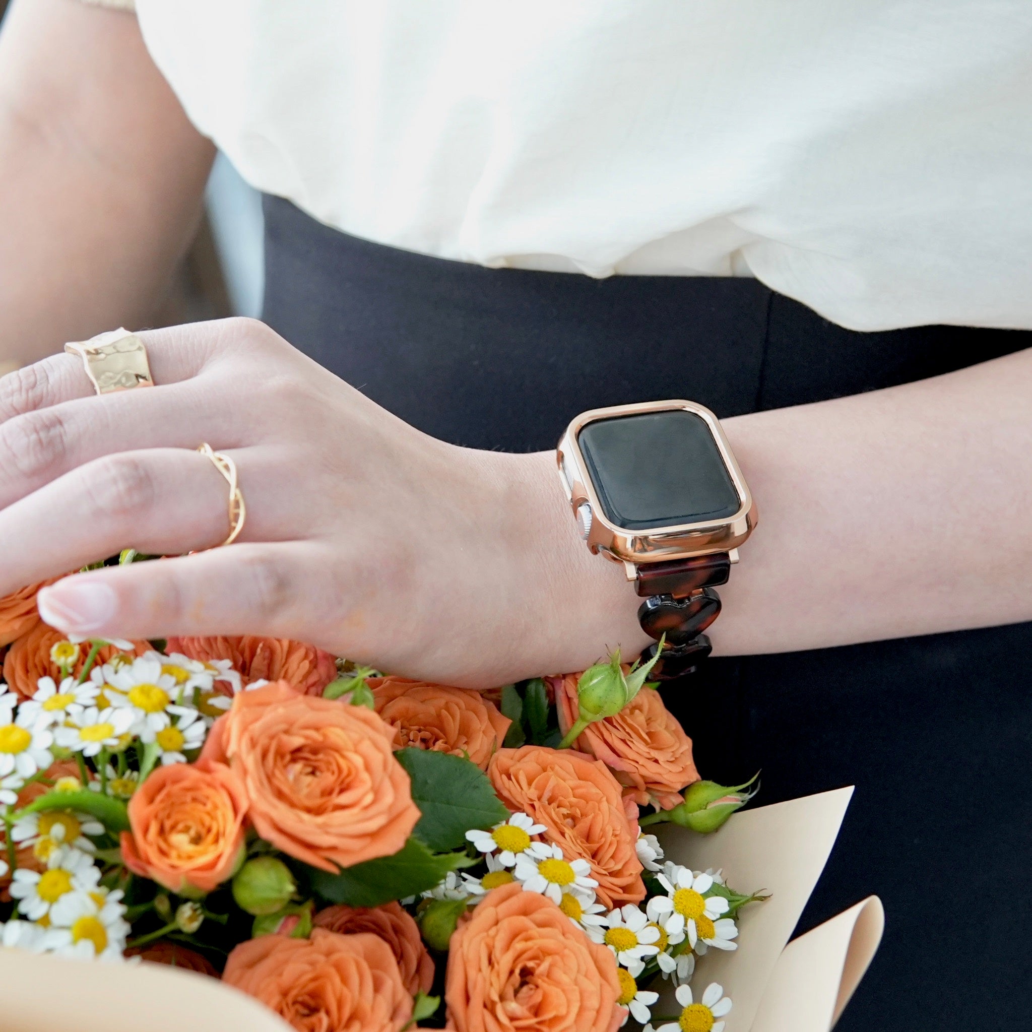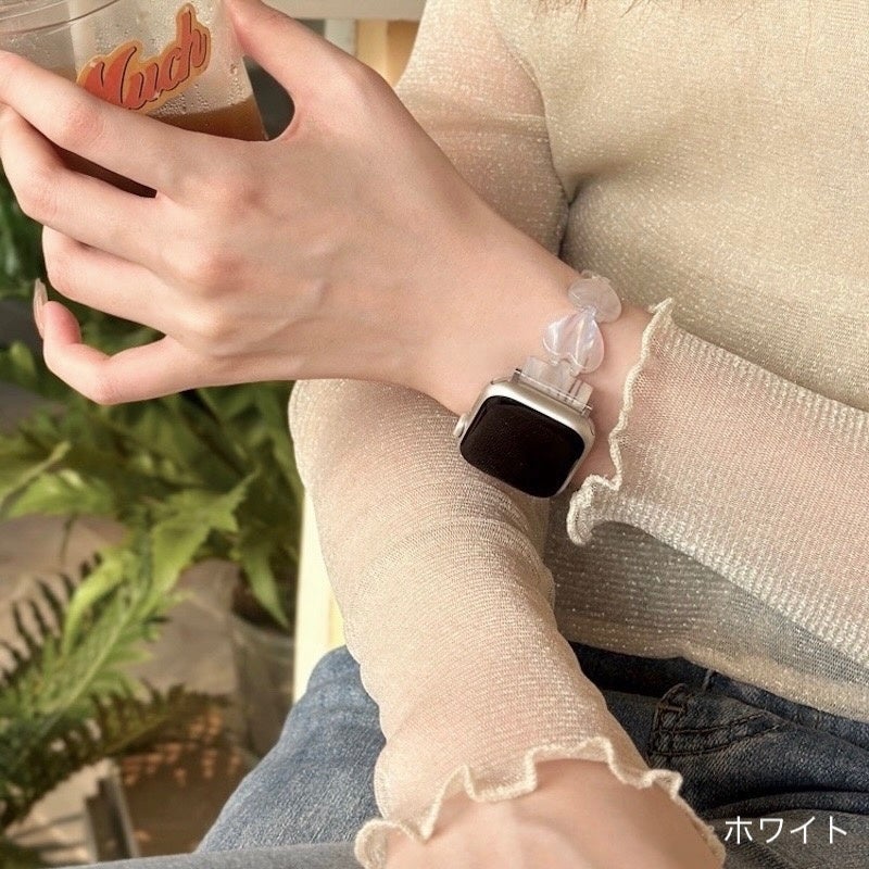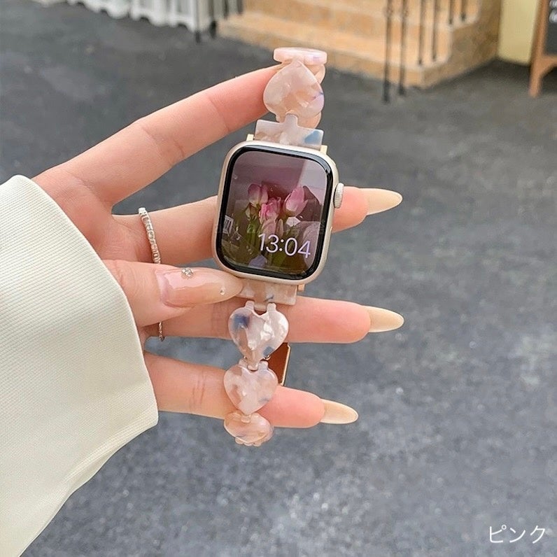 シンプルなデザインながらもハートのシルエットが取り入れられており、見た目に華やかさをプラスした可愛らしい樹脂製のアップルウォッチバンドです。