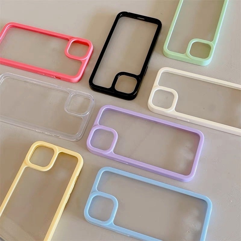 マーカーで囲ったようなカラーフレームがオシャレなシンプルケースです。直線的でありながら丸みの残るデザインが大人可愛い雰囲気をまといます。背面は本体の色を楽しめるクリア仕様です。
