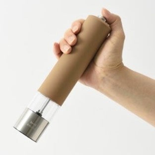 ボタンひとつの簡単操作で、調理中でも片手でスパイスが挽ける電動ミル。LEDライト付きで暗い場所でもスパイスの量を確認できます。温かみのあるブラウンカラーでダイニングにも馴染み、ギフトにもぴったり。