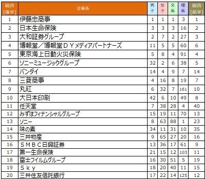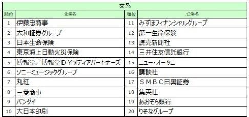 《2025年卒[後半]就職ブランドランキング調査》首位の伊藤忠商事を中心に商社人気堅調。音楽芸能等のエンタメ・ゲームにも注目。女性を中心に航空や旅行も人気改善。