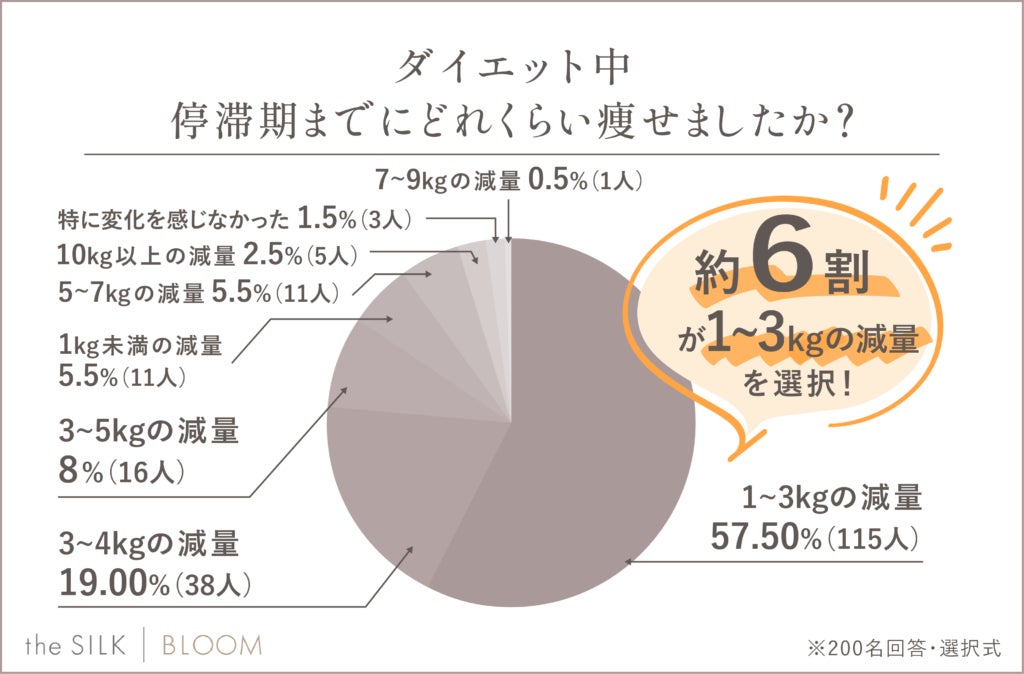 停滞期が訪れるまでに痩せた体重は、1~3kgが最多の57.5%でした!