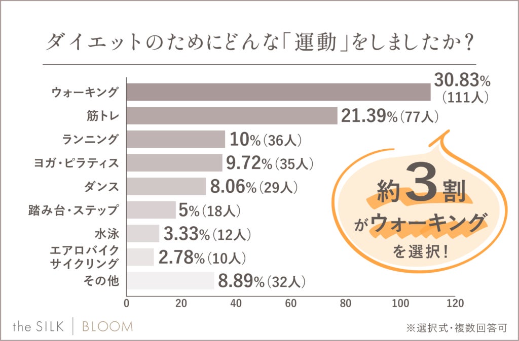 なお停滞期が来る前に行っていた運動方法では、約3割の方が「ウォーキング」を挙げています。