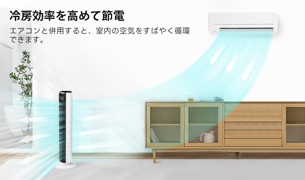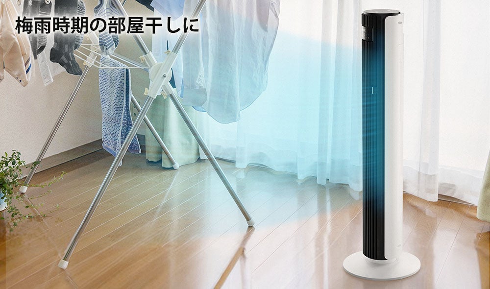 Levoit Classicタワーファンのターボモードがエアコンと併用すると、室内の空気をすばやく循環させることができます。エアコンと併用して部屋の換気に役立ち、節電にもつながります。 また、ジメジメとした梅雨時には、除湿器と組み合わせて洗濯物を驚くほどスピーディーに乾かします。