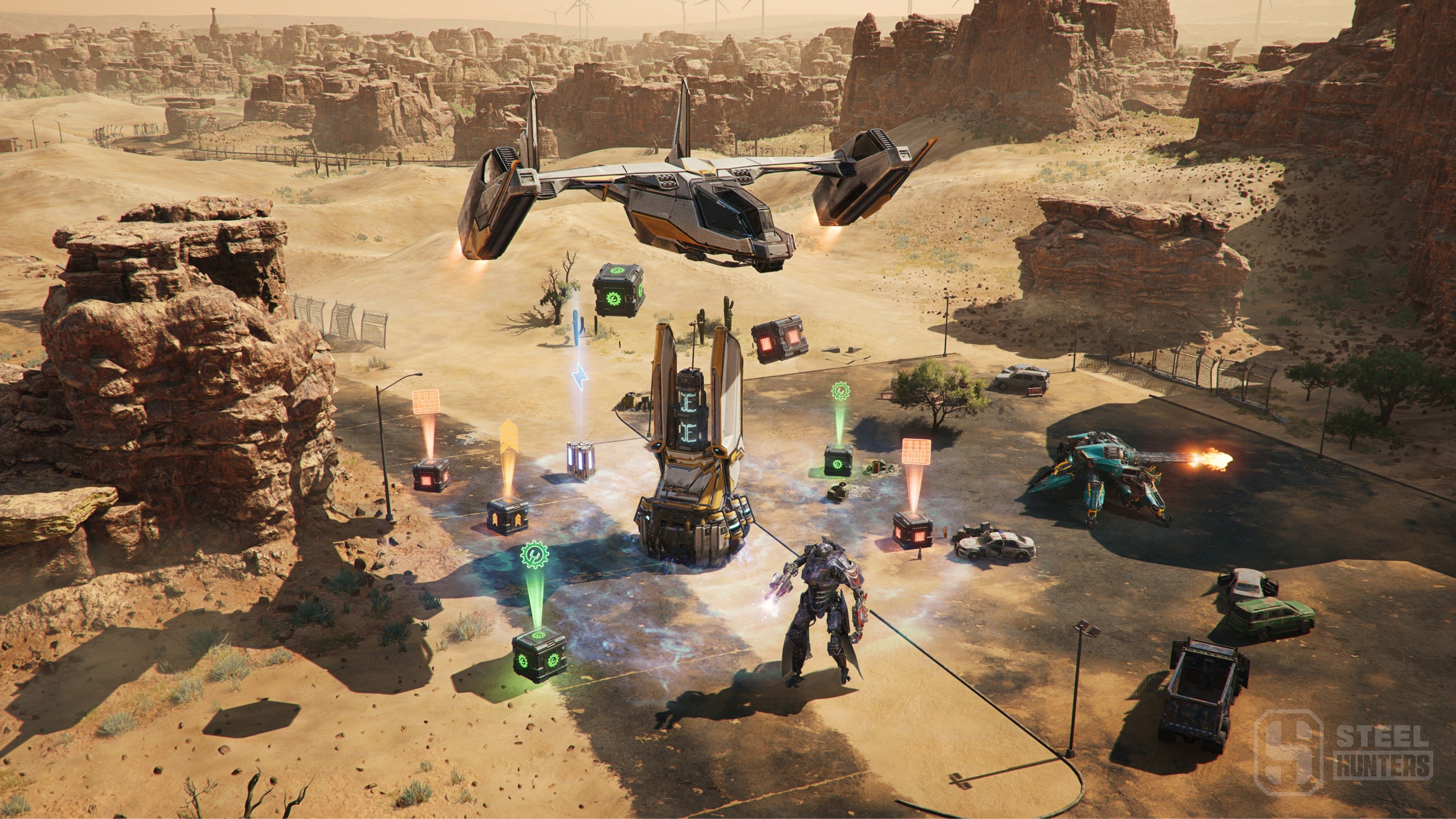 『Steel Hunters』は、プレイヤーが巨大な戦闘マシンであるハンターを操り、PvPvE(プレイヤー対