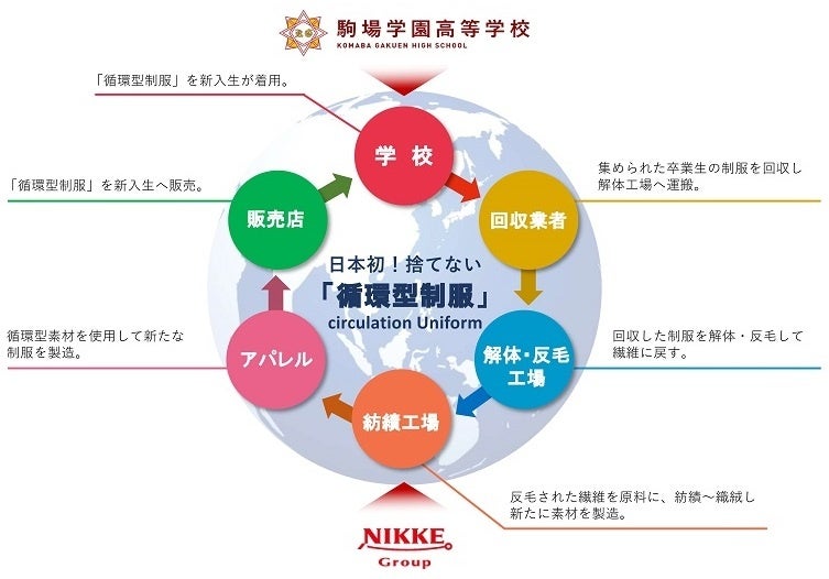 選定された事業は、卒業生の制服を回収して再生させる、服から服への「循環型学生服」実証事業です。