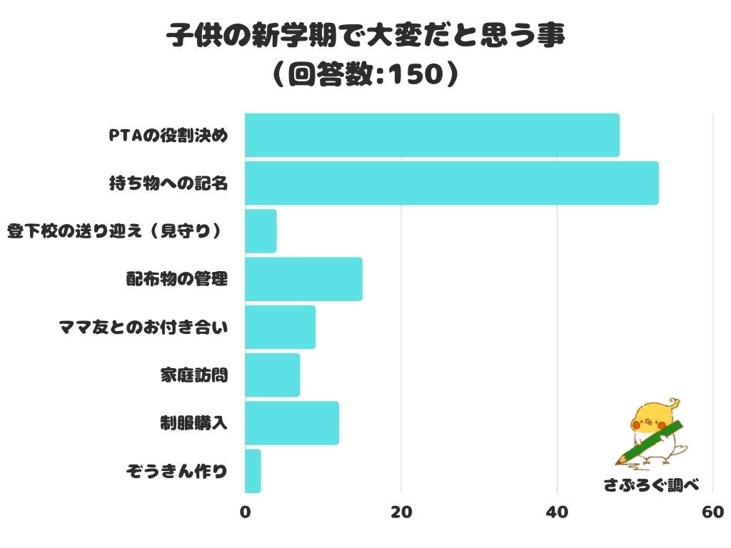 【調査レポート】子供の新学期で大変だと思う事は?1位は「持ち物への記名」!