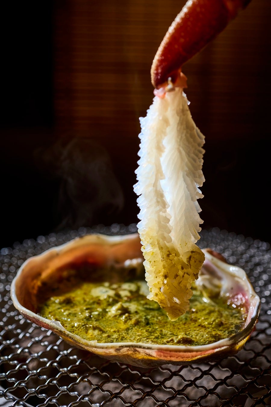 かかにみそ甲羅焼だけではなく、かに身をくぐらせることでジューシーなかに身とクリーミーで濃厚なかにみその饗宴がお楽しみいただけます。焼き上げたかにの身を、熱々のかにみそにくぐらせて、炙りの香りと共に口に広がる旨味の重奏はまさに芸術とも言えます。さらに焼いたかに身をほぐして軽く混ぜればかにみそのグラタンのような贅沢な味わいに。