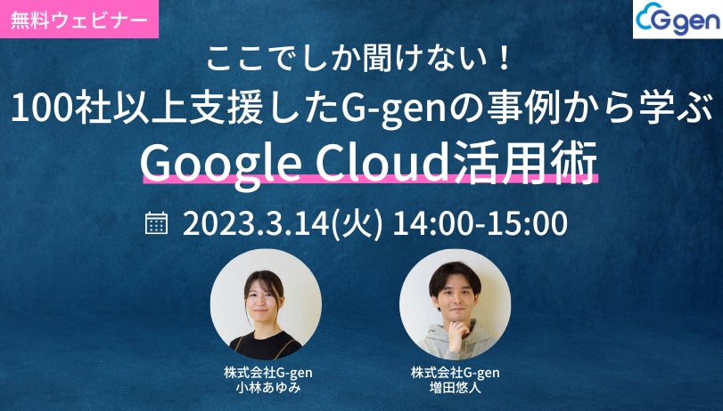 株式会社G-gen(本社:東京都新宿区、代表取締役:羽柴孝)は、ウェビナー「ここでしか聞けない!100社以上支援したG-genから学ぶGoogle Cloud活用術」を実施いたします。