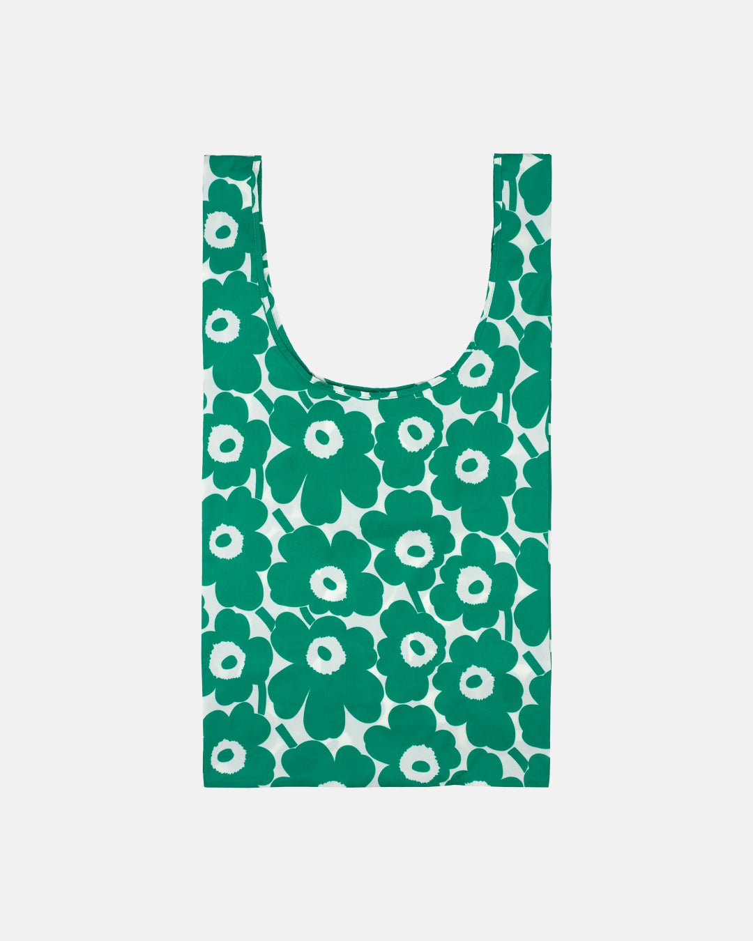 マリメッコでは、アースデイである4月22日(金)に、リサイクルポリエステルの人気バッグ「スマートバッグ シリーズ」の新色を発売。今春夏シーズンのテーマである「ボタニカル(植物の世界)」から着想を得て、鮮やかなクロロフィルグリーンでマリメッコのアイコン的モチーフ ウニッコ(Unikko/ケシの花)を描きました。