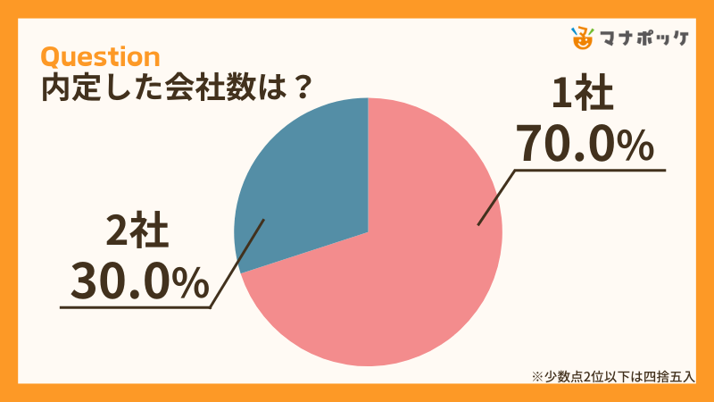 1社内定を獲得した方が21名、2社内定を獲得した方が9名という結果に。