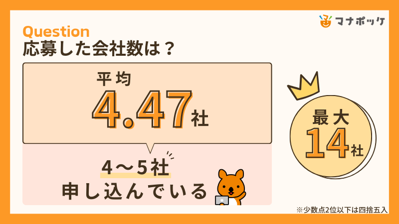 ② 平均4.47社に応募、最大14社申し込んだ方も